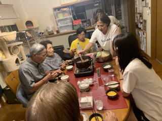 | ママの実家(京都府綾部市)からはるばる ご両親とお姉ちゃんと姪っ子が、車で真岡まで 来てくれた!(約10時間の道のり) ご両親は80歳をとっくに過ぎておられるが、 10時間も乗り続けて来るのは大変だと思う。 お姉ちゃんは司法書士、そして姪っ子も一昨年 難関の司法書士試験をパスして念願の司法書士 となった。法律には詳しい人たちである。 おそろしや・・・! 明日のイベントが楽しみである! |