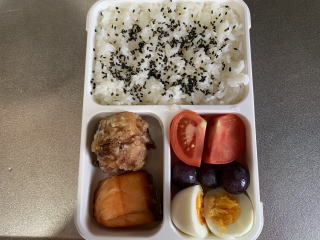 | 10月はママのバースデー!当日は、家族が 揃わないのでみんなが集まれる日にお祝いする。 相変わらず仕事に行くママの為に弁当を作って いるパパである。必須メニューは「シャケ!」 そしてジャパンミートで(4房1,000円)で 買ったてんこもりの茨城県産「巨峰」も入れて あげた。今年はぶどうが安くシャインマスカット もお手頃?かな・・・ |
